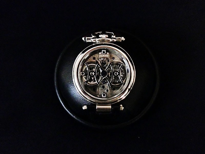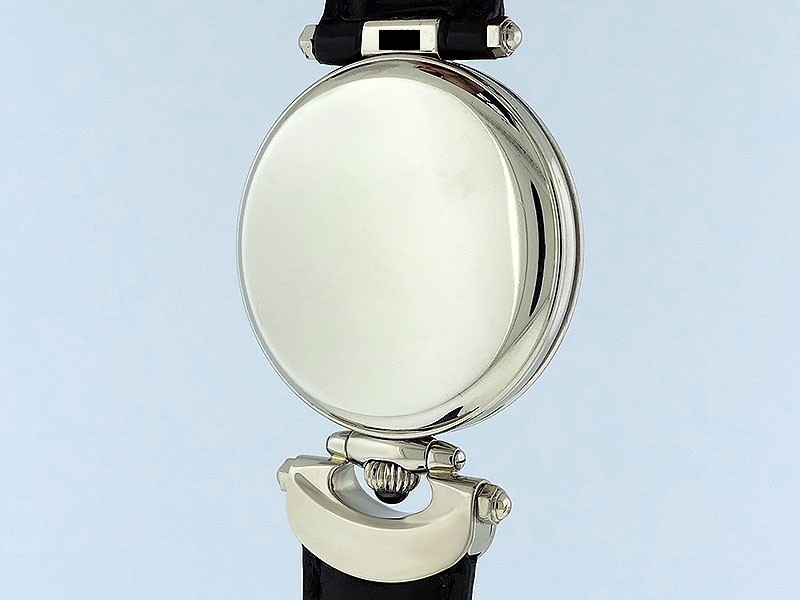 Swiss made Fleurier Butterfly Tourbillon, polished finished 18 White Gold round shaped case, reserve to ± 110 hours. Skeletonised dial, symmetrical winged bridges, 1-minute Tourbillon, blue sapphire cabochon. Black alligator leather w/18K white ...| Brand | Bovet |