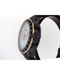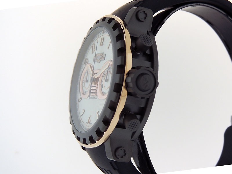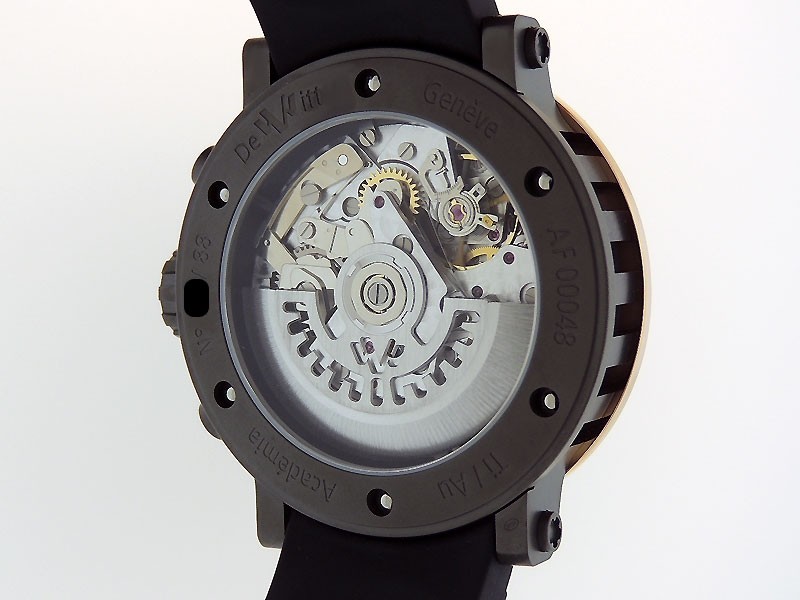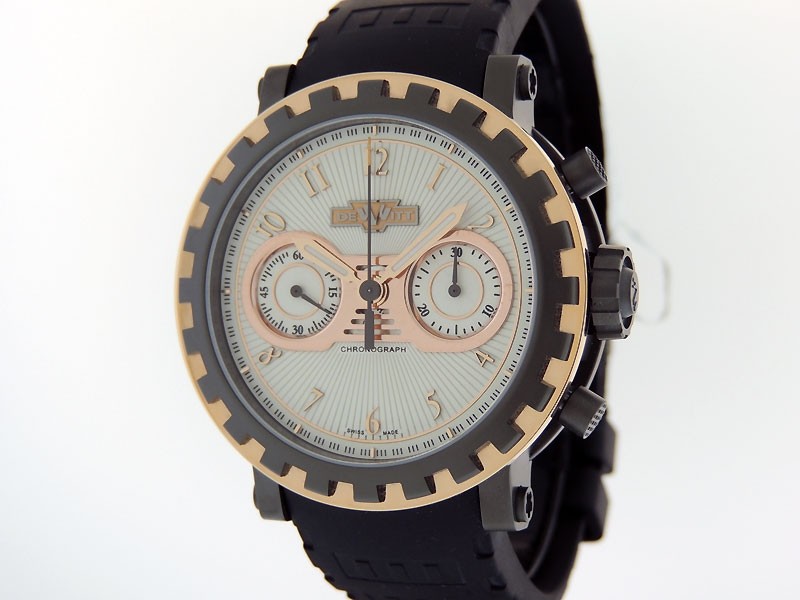 Swiss made DeWitt Academia Chronographe in 2 Tone AC.6005.53A.M092 in three-body 18k Rose Gold/Titanium round shape case, reserve up to ± 48 hours. Guilloche, Silvered and Rose Gold Elements dial, Black Rubber strap with “W” double deployant Buckle.| Brand | De Witt |