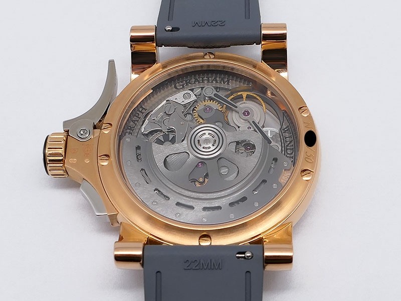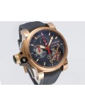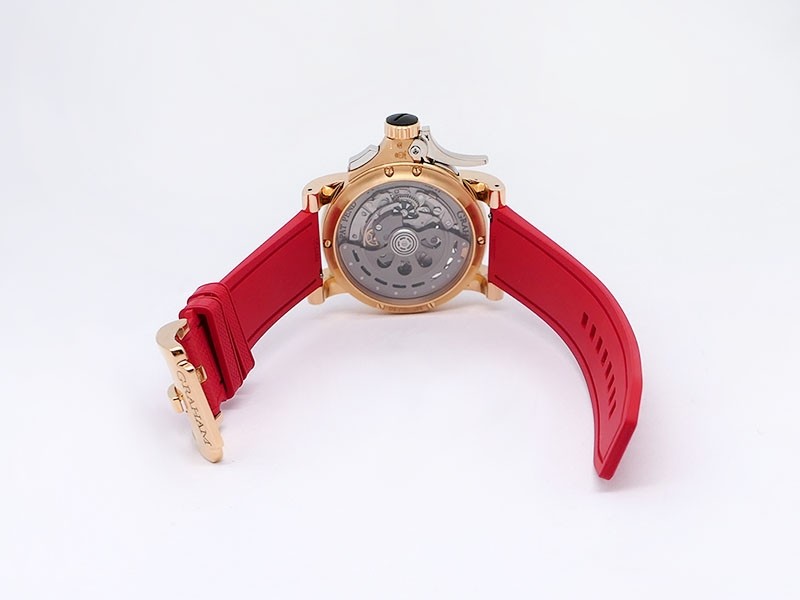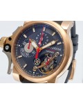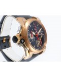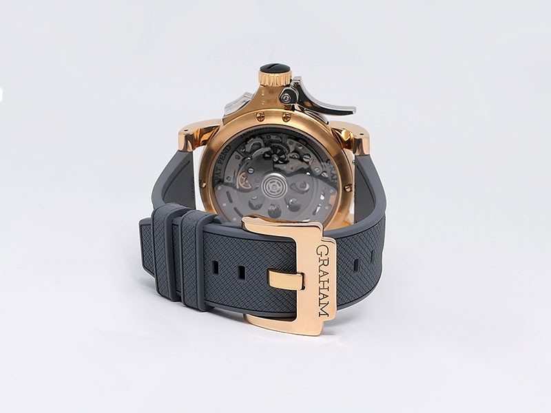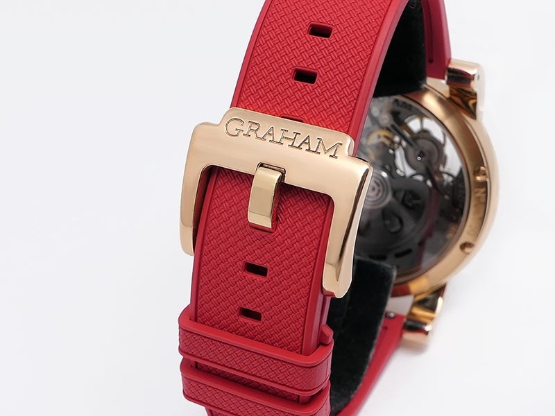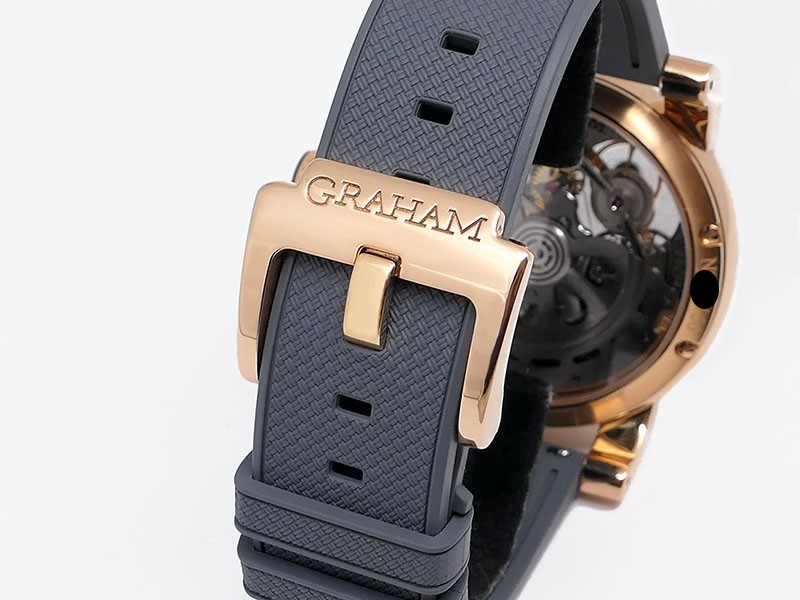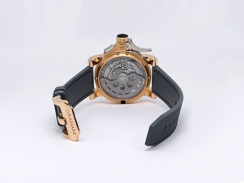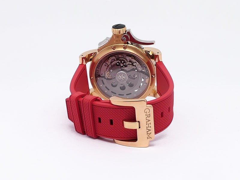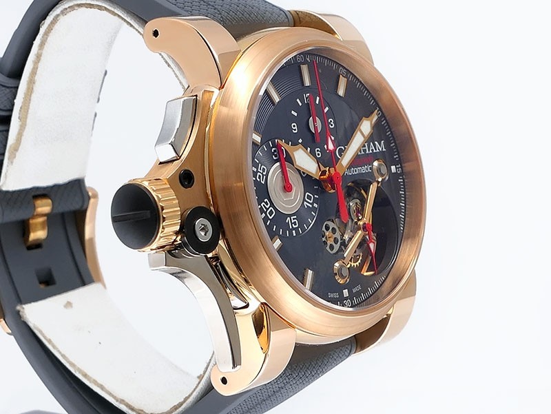 Swiss made Tourbillograph “TRIGGER’ Havana 18k Rose Gold round shaped case, reserve to ± 48h, Black grey dial / "trigger" uses to mitigate lag in timing, start/stop the Chronograph, tourbillon escapement carriage, Grey/Red Rubber,black leather...| Brand | Graham |