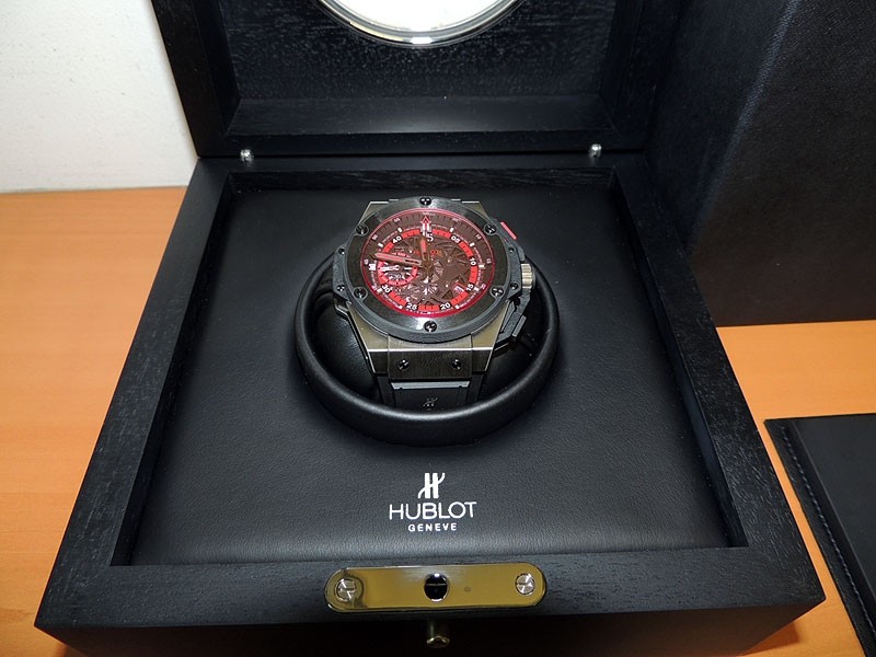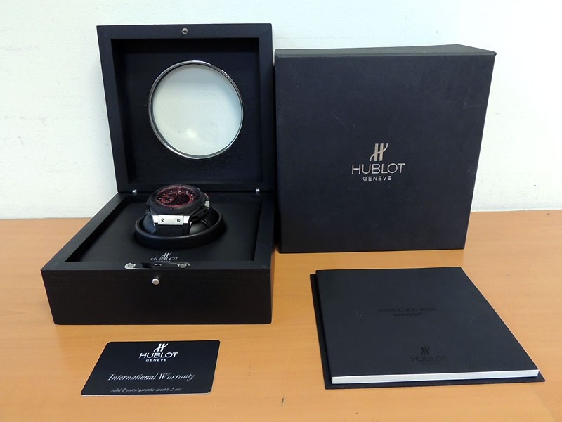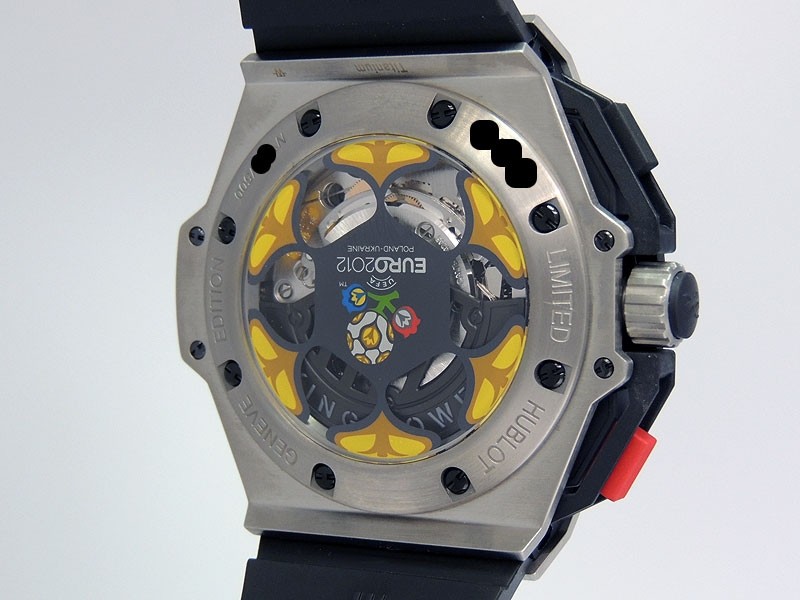 Swiss made Big Bang UEFA Euro 2012 Poland, crafted Titanium Tonneau shaped case, power reserve to ± 42 hours. Skeletonized dial w/ Red accents, date, game central 45’ counter. Black Rubber/Red Strap w/Hublot Rose Gold Deployant Buckle...| Brand | Hublot |