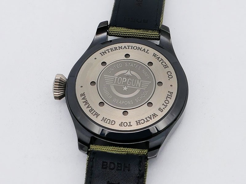 Top Gun U.S.N. Fighter Weapons School logo.. Kevlar green fabric strap w/steel IWC Dep...| Brand | IWC |