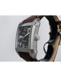 Swiss made Paramount Linear Power Reserve in satin/polished finish curved solid Stainless Steel Square shaped case, reserve up to ± 42 hours. Sunray brushed black color dial, Date, Power Reserve indicator. Brown Alligator style textured leather ...| Brand | Jean Richard |