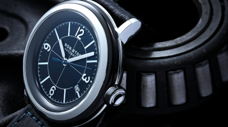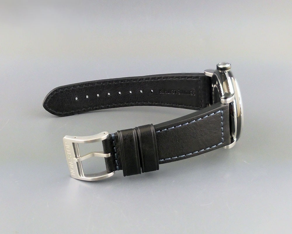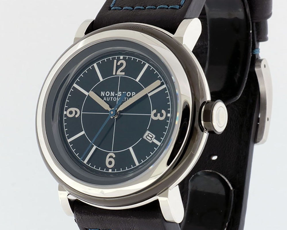 Non-Stop Watches Circle Black Navy T5 Surgical Titanium round shaped case, reserve up to ± 40hours. Navy dial, date. Blue Italian leather quick release strap with Non-Stop Tang buckle, plus 2nd rubber strap.| Brand | Non-Stop Watches |