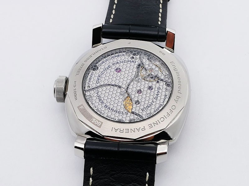 Swiss made Granturismo 8 Days GMT Stainless Steel cushion shaped case, reserve to 192h/8 days Black hobnail-patterned grid dial 2nd time zone, Small second/ 24 hour day/night, Power reserve, date indicators.Black Leather Strap/ Ferrari Deployment ...| Brand | Panerai |