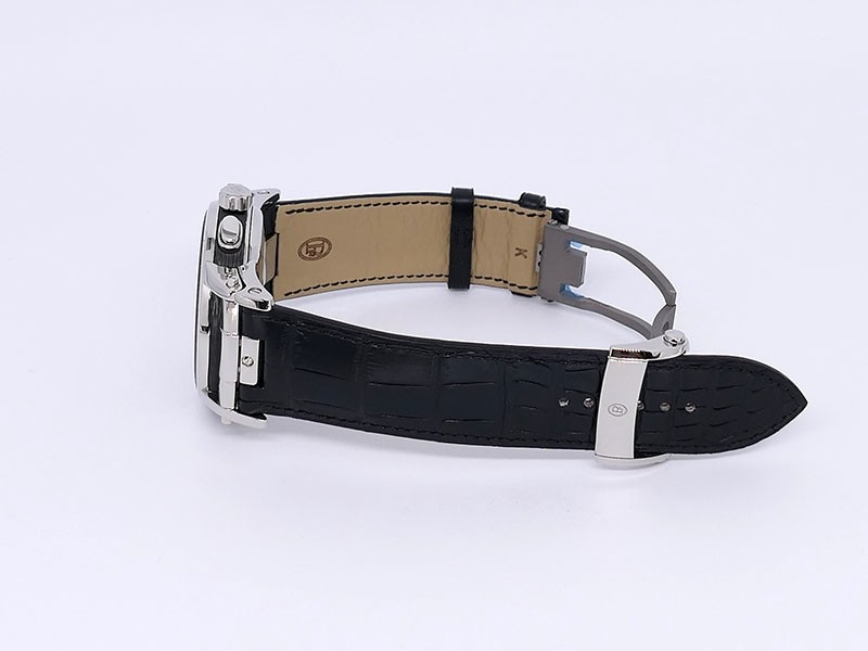 Swiss made Transforma CBF Chronograph Carbon Fiber round shaped case w/ silver-tone steel holder, reserve to ± 50h. BF galvanic black "guilloche" centre dial w/Date, "Confederaçao Brasileira de Futebol" Black calf leather strap with Deployment ...| Brand | Parmigiani |