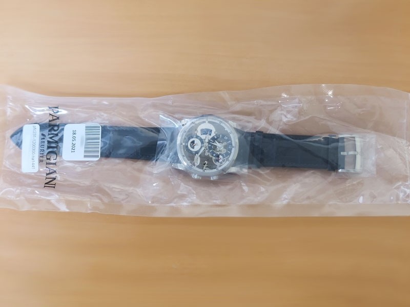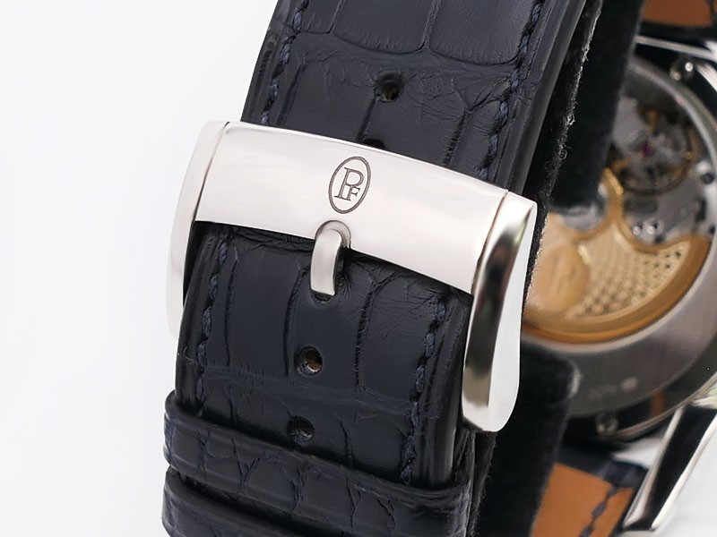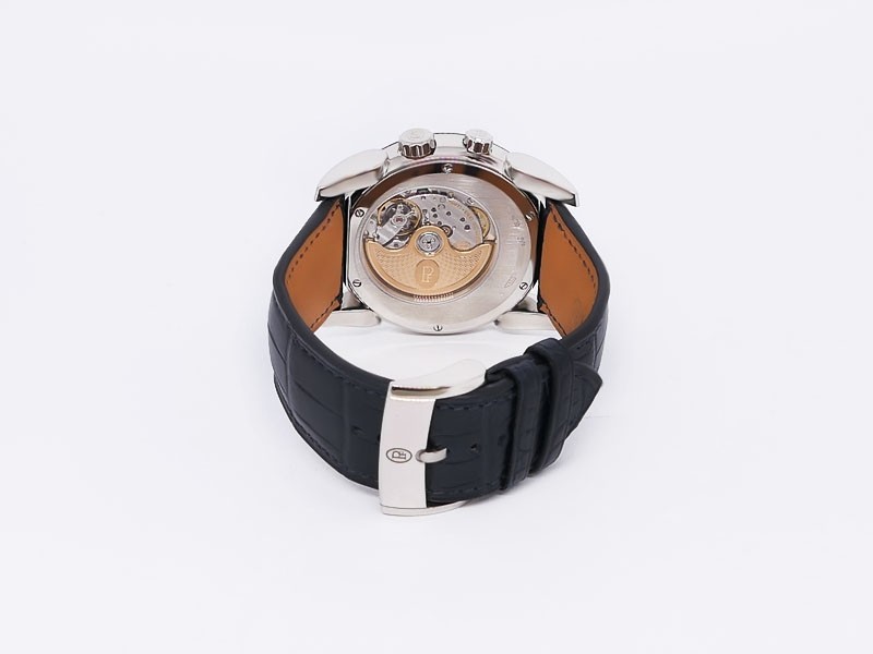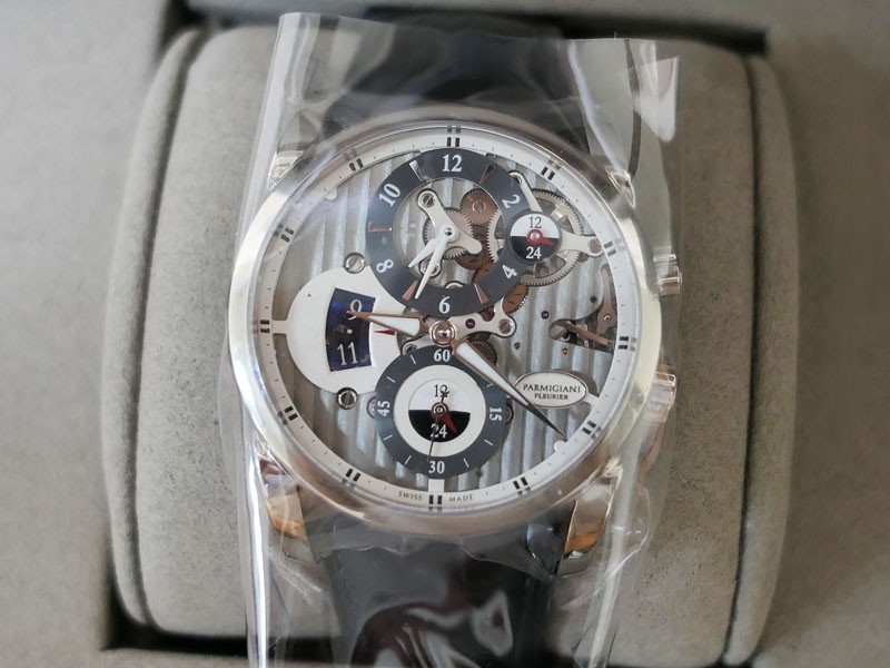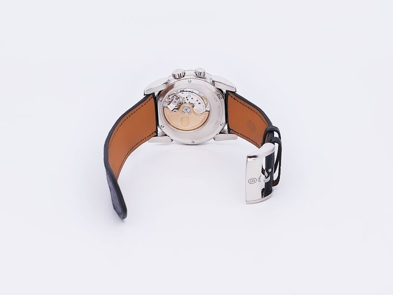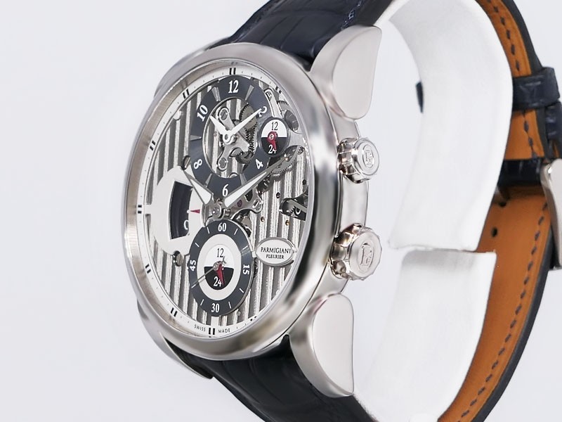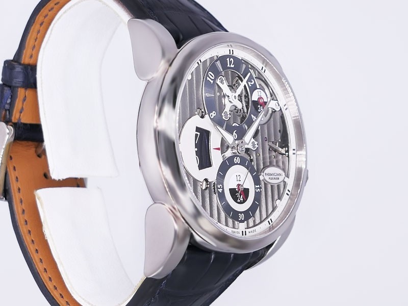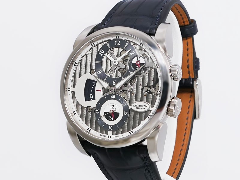 Swiss made Hemisphères Tonda 18k White Gold round shape case, reserve up to 50h. Openwork Graphite finished dial,. Elongated Date, GMT/Dual Time-Zone Function, Day/Night indicator. Black Crocodile leather strap, Parmigiani engraved 18k White g...| Brand | Parmigiani |