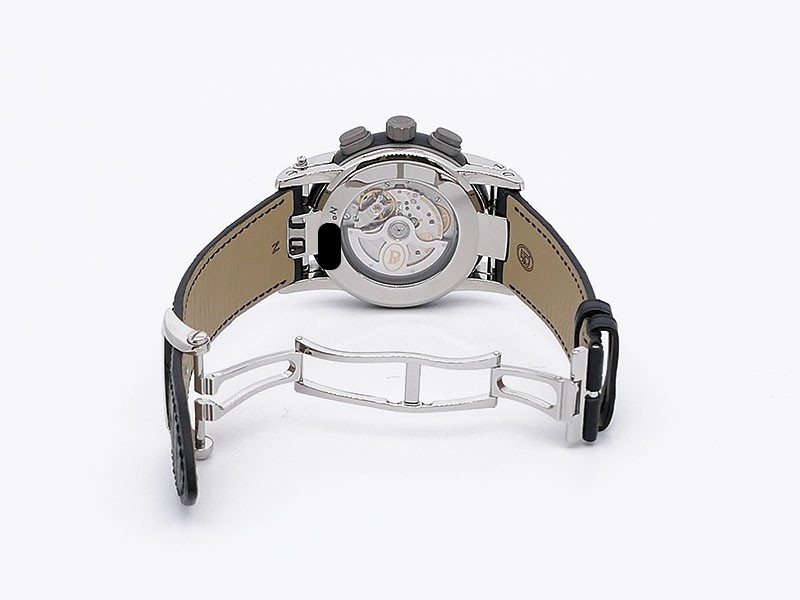 Swiss made Transforma Rivage Chronograph body crafted from lightweight titanium and high-tech carbon round shaped case, reserve up to ± 50hours. Graphite dial with Date, Transforma, Black Calfskin strap with Pf Titanium Deployment Buckle.| Brand | Parmigiani |