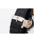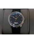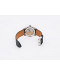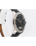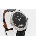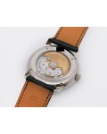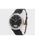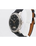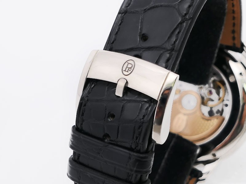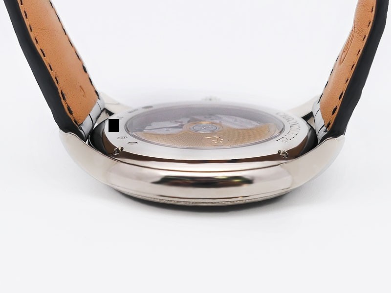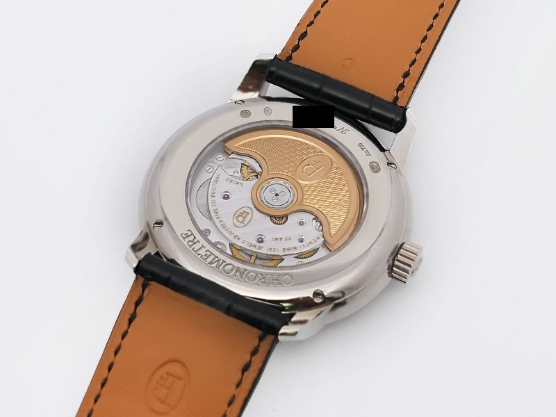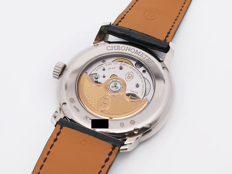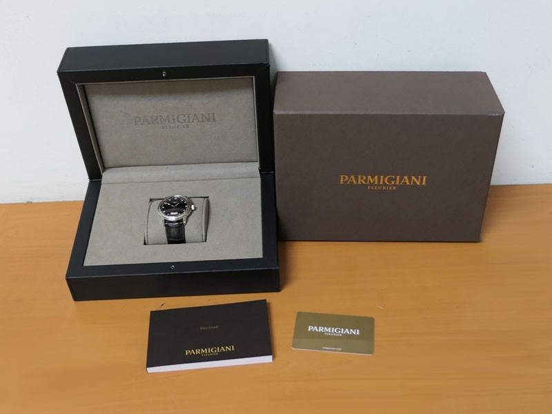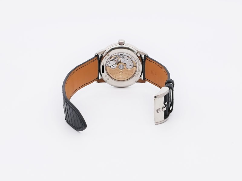 Swiss made Toric Chronometre crafted polished 18k White Gold round shaped coin edge case, reserve to ± 55 hours. Black Opaline dial with Arch shaped date, Black alligator leather by Hermès Strap with Pf Ardillon Buckle.| Brand | Parmigiani |