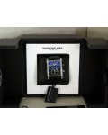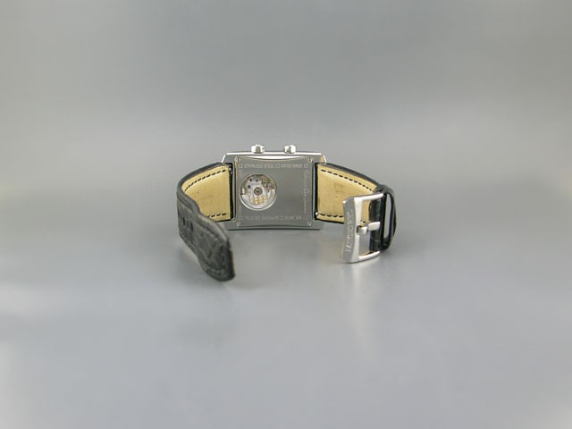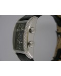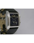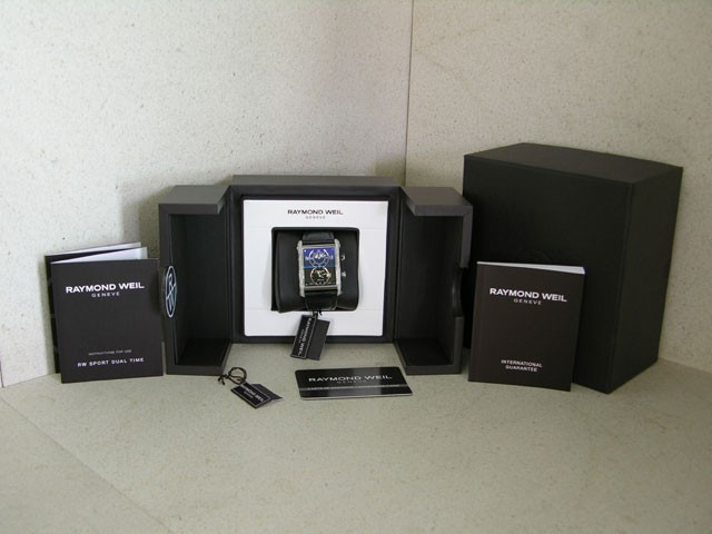 Swiss made Don Giovanni Cosi Dual Time W/Diamonds polished two-body Stainless Steel curved Rectangular shaped case, reserve to ± 38h. Black guilloche Pattern dial with GMT sub dial, Date, 24hr "AM" /"PM" & 12-hour time zones. Black leather strap ...| Brand | Raymond Weil |
